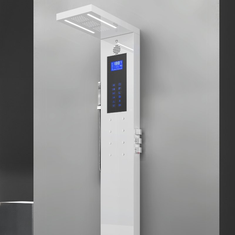 – Cromoterapia (8 opções de cores estáticas ou cíclicas acionadas no painel de controle do painel na versão com chuveiro tradicional / 64 variações de cor acionadas por controle remoto na versão com chuveiro de teto)